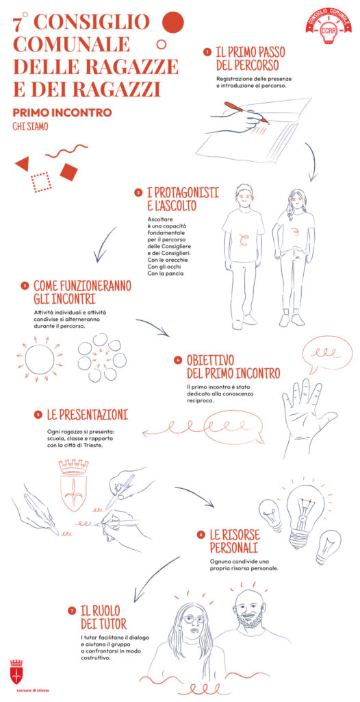 Successivamente, ciascun ragazzo si è presentato, indicando la scuola e la classe di provenienza, condividendo un aspetto della città di Trieste che apprezza e uno che invece non gradisce. Infine, a ciascuno è stato chiesto di raccontare una propria risorsa personale.